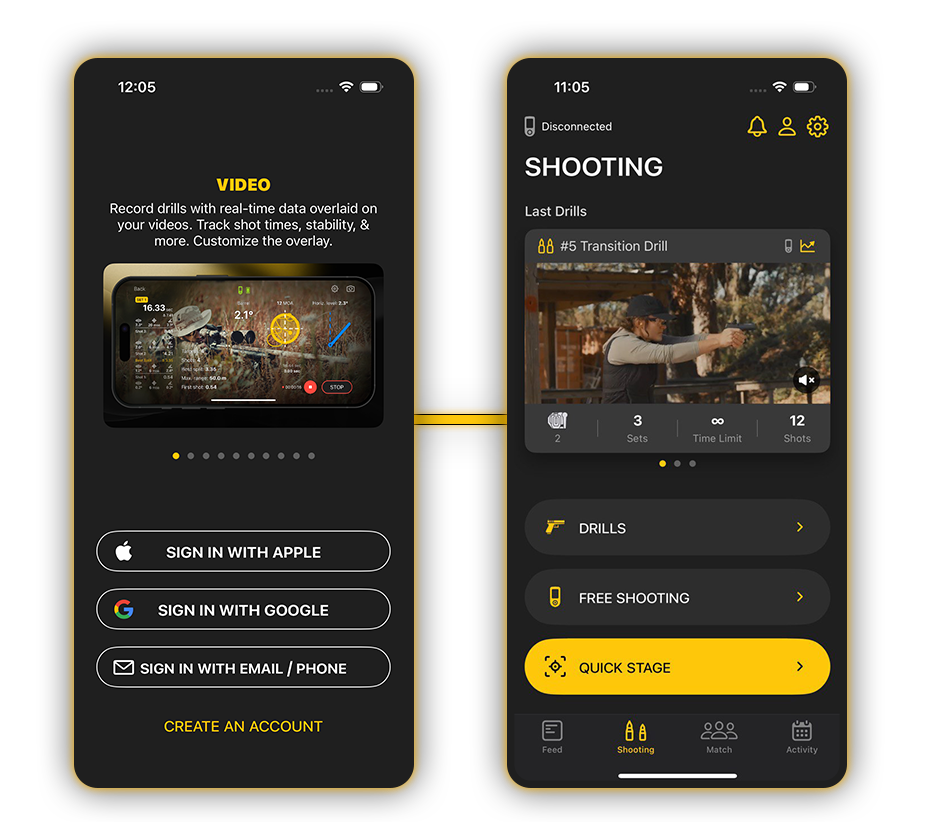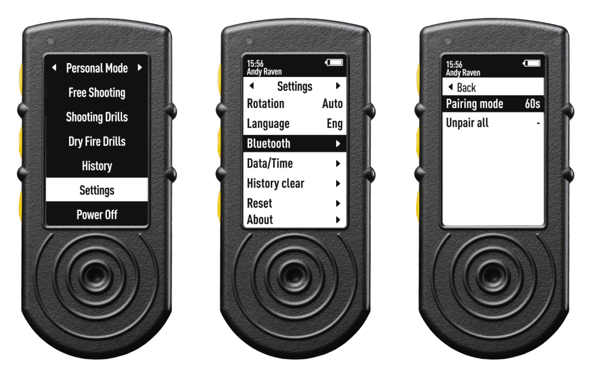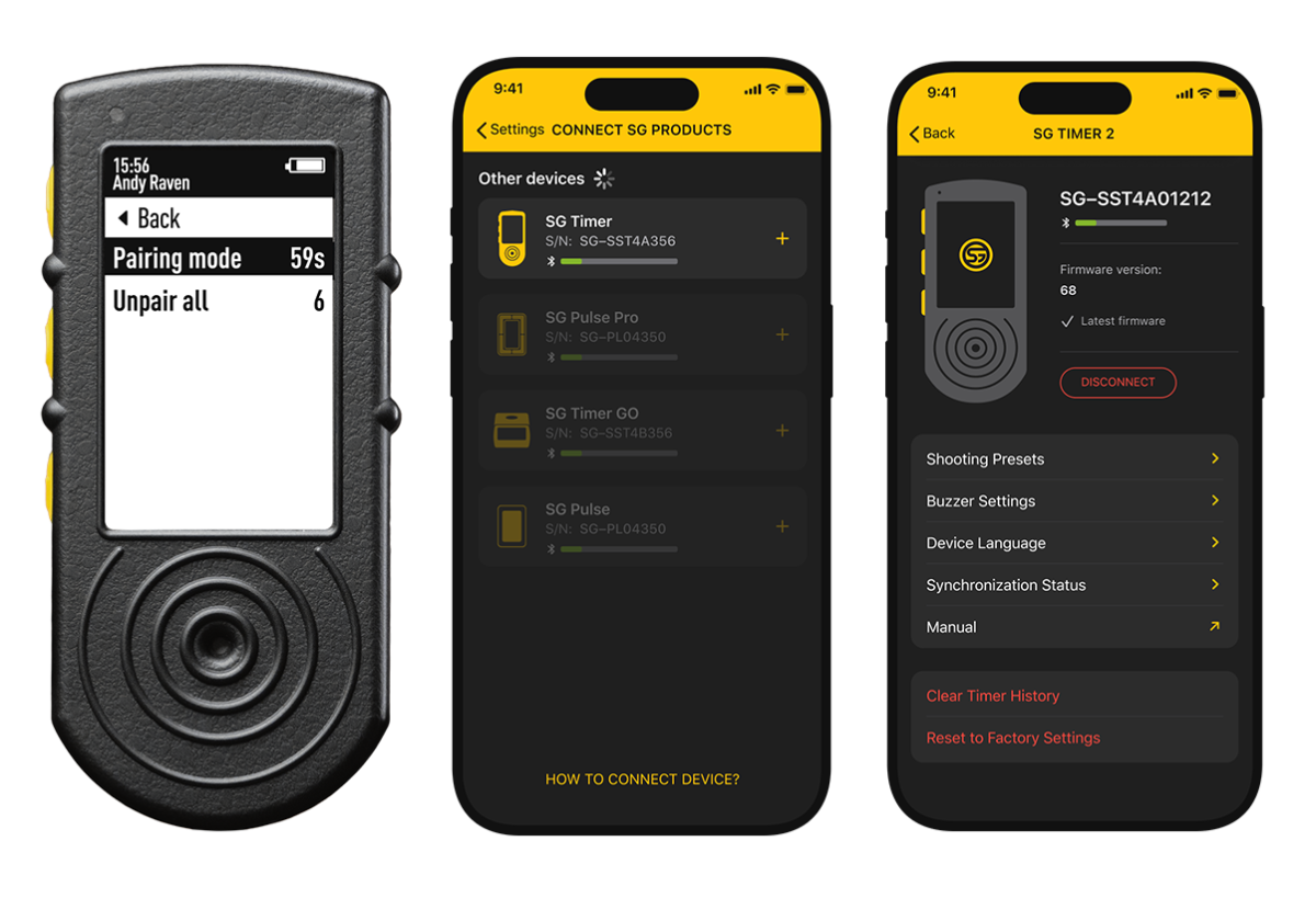 SG Timer, wcześniej sparowany ze smartfonami, po otwarciu aplikacji Drills połączy się z nimi automatycznie (tryb parowania nie jest wymagany).
