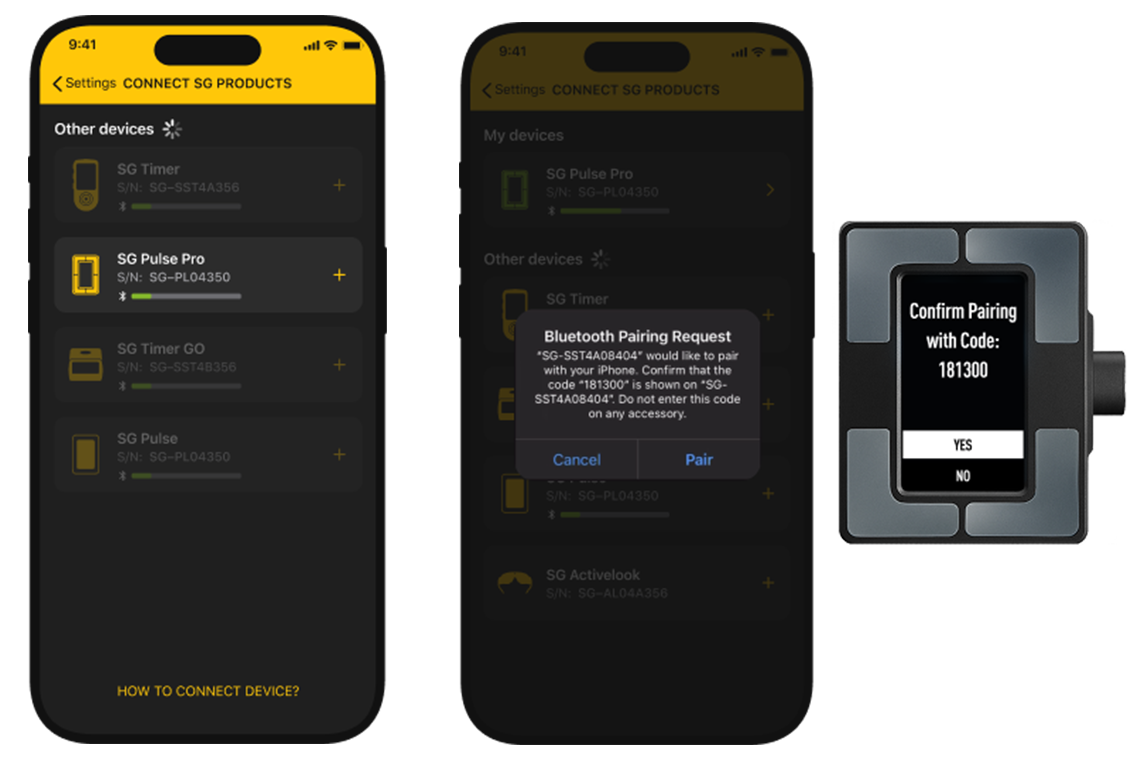 ⓘ Note: Confirmation appears only in the app, as SG Pulse has no screen. Only one smartphone can be paired at a time.